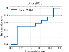 >>> from torch import rand, randint >>> from torchmetrics.classification import BinaryROC >>> preds = rand(20) >>> target = randint(2, (20,)) >>> metric = BinaryROC() >>> metric.update(preds, target) >>> fig_, ax_ = metric.plot(score=True)