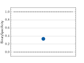 >>> from torch import rand, randint >>> # Example plotting a single value >>> from torchmetrics.classification import BinarySpecificity >>> metric = BinarySpecificity() >>> metric.update(rand(10), randint(2,(10,))) >>> fig_, ax_ = metric.plot()
