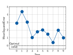 >>> from torch import randn >>> # Example plotting multiple values >>> from torchmetrics.regression import MeanSquaredError >>> metric = MeanSquaredError() >>> values = [] >>> for _ in range(10): ... values.append(metric(randn(10,), randn(10,))) >>> fig, ax = metric.plot(values)
